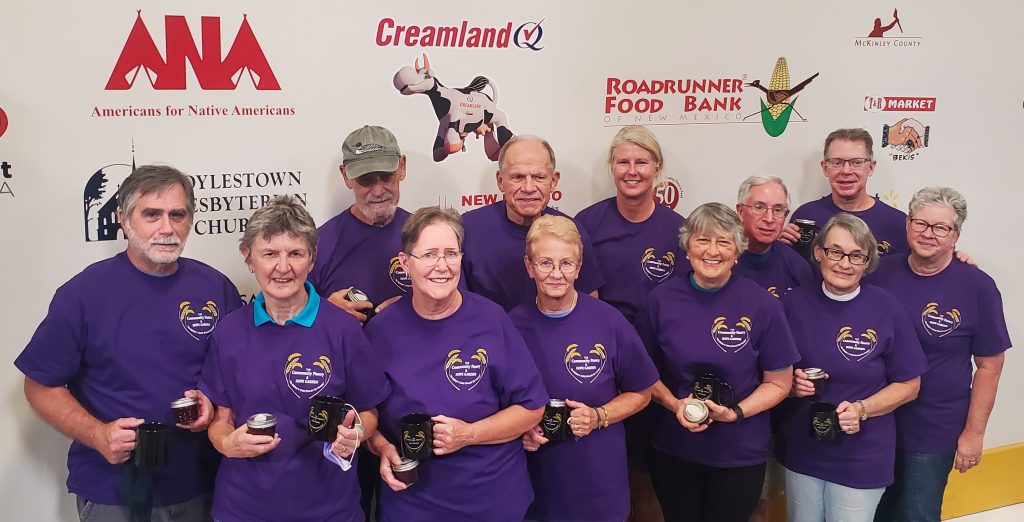 We start the day with lots of energy, but as the day wears on, our pace slows a bit until finally it’s time to quit. Today we were treated to a wonderful chicken meal by the board members of the pantry. We also took a group picture and we’re given pantry t-shirts, mugs, and some homemade chokecherry jam. Yum! The pantry is truly a community operation of caring and concern for those who struggle to keep their family fed. Each individual worker and volunteer is committed to making the pantry a success. They have been the best people with which to share this opportunity. I have enjoyed this experience immensely and hope to return to Gallup in the future.