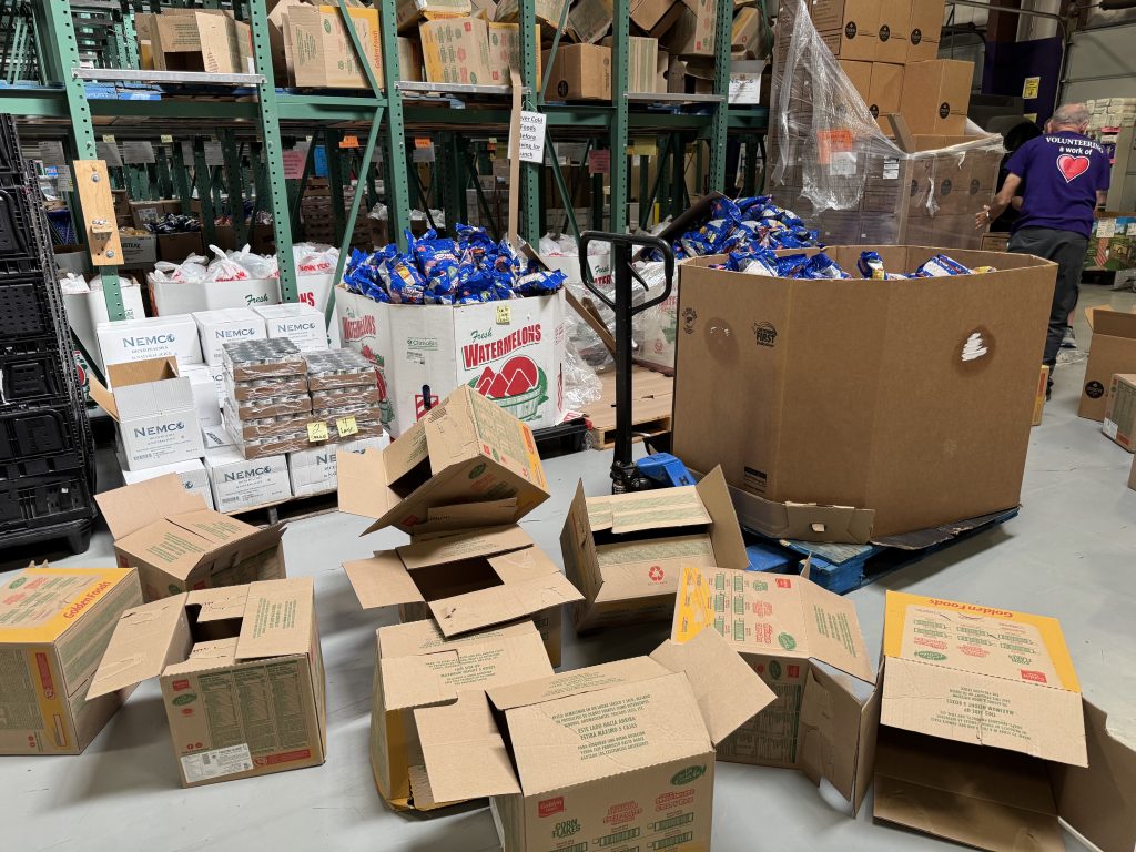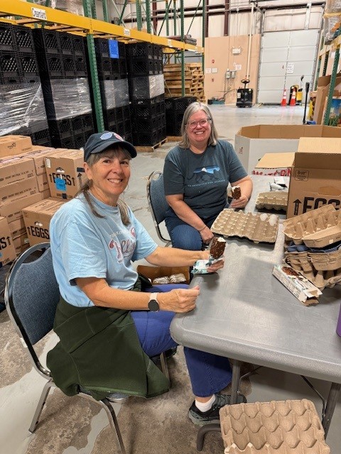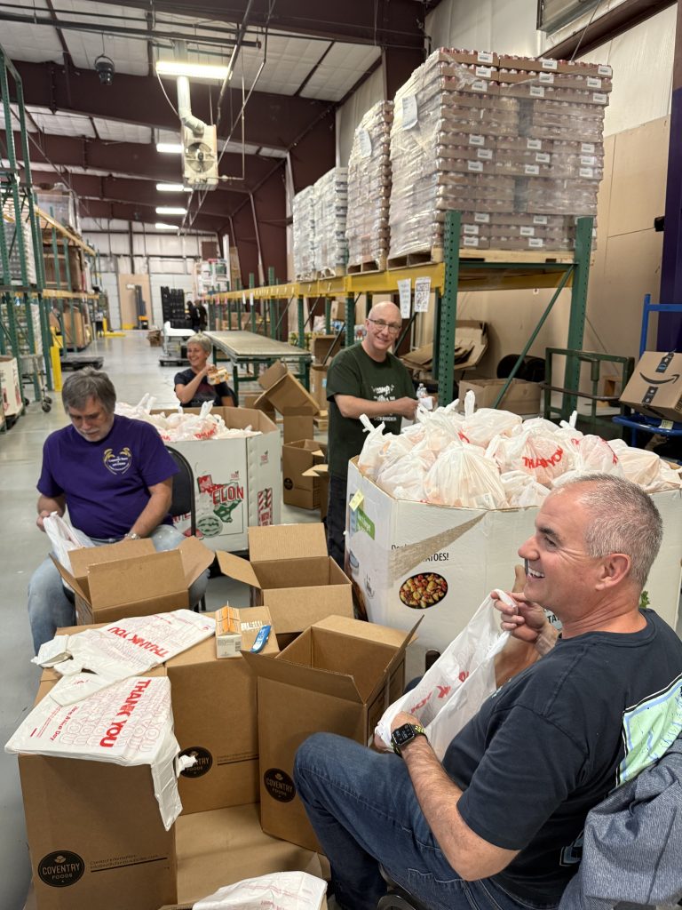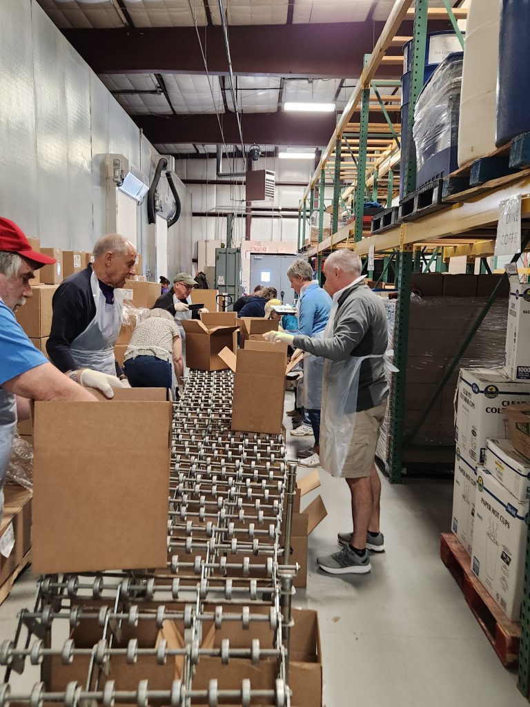 In addition, the Mission Team undertook several other tasks, including serving customers at the pantry, repacking large cereal bags, packing multiple pallets for the commodity food program, and repacking bacon, eggs, and various other items for the Pantry.