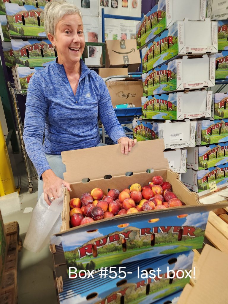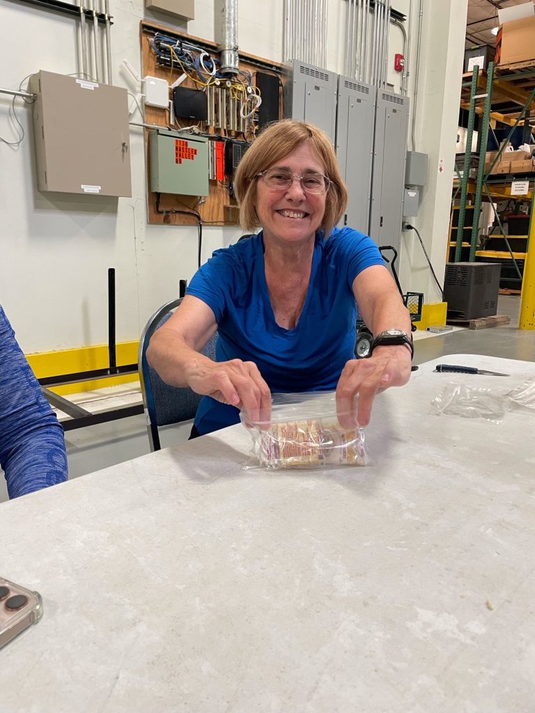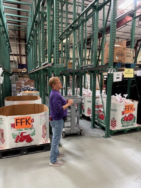 We drove to The Community Pantry to get back to work. Tasks included repacking of crackers by the “Cracker Jacks”, cereal boxes by the “cereal killers”, bags of Food for Kids, commodities bins of food for families, carts of food for small and large families, cheese, and bags of ice.