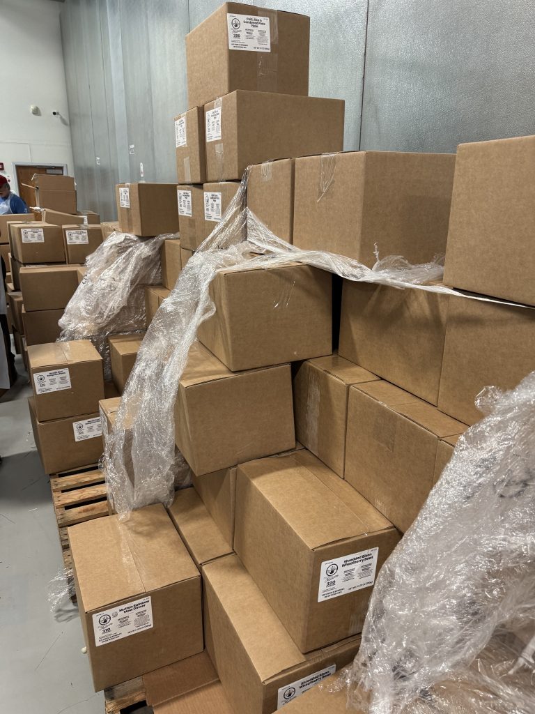 Packing the meals involved finding boxes of 14 different meals on pallets, which at time felts like playing Jenga.