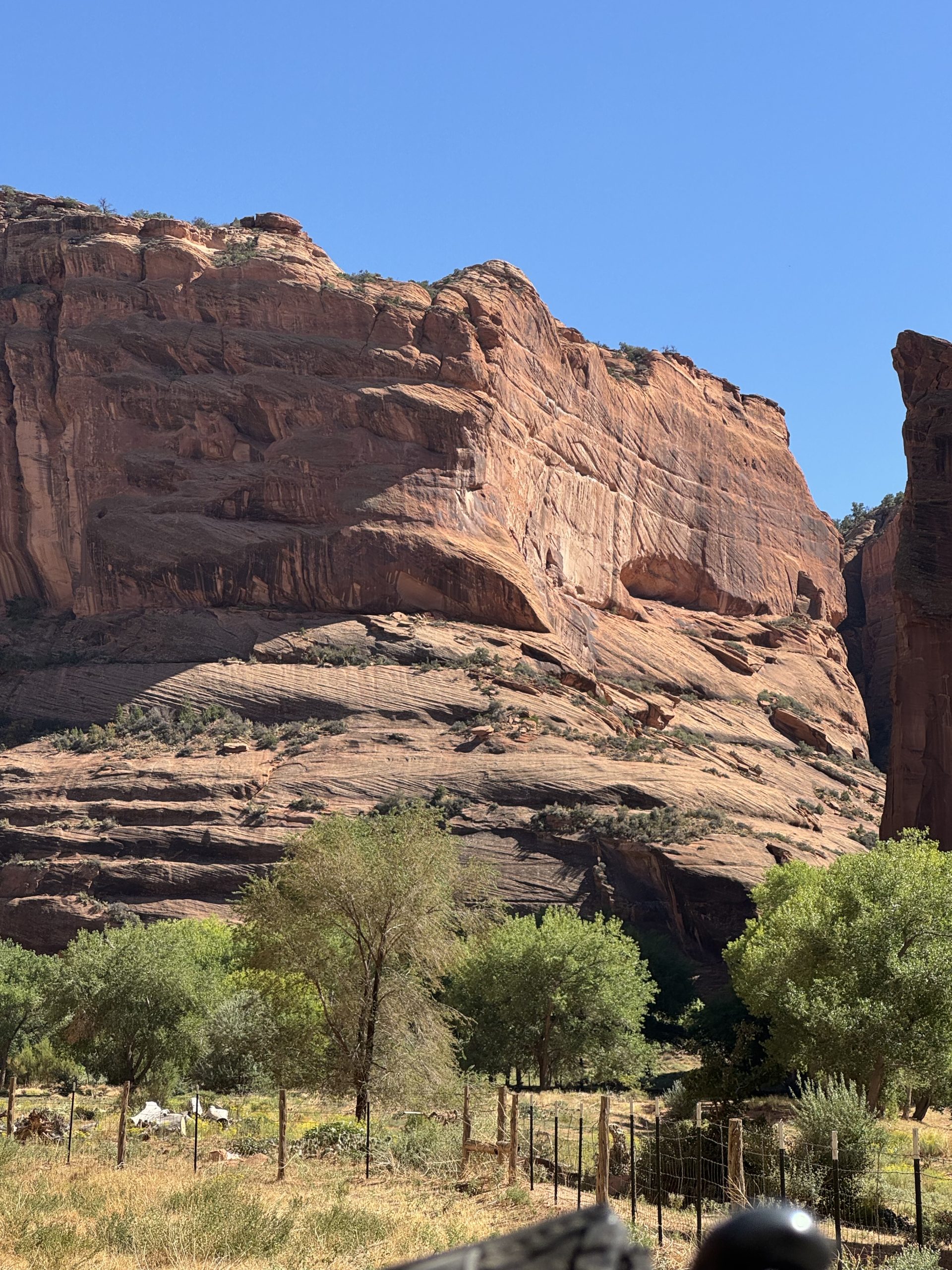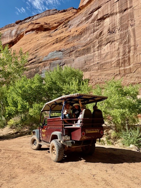 Then it was off to Canyon de Chellly in Chinle AZ. We stopped iat the National Monument visitor center to watch an introductory video and to visit the gift shop before meeting up with our tour guides. The tour was in 4×4 Jeeps through the sandy bottom of the canyon. We learned about the history of the different peoples who called (and a few who still call) the canyon home. The guys were blessed to hear life stories shared by our 75 year old guide Elsie, who grew up in the canyon. It was a three hour tour but unlike Gilligan’s Island, we made it back safely.