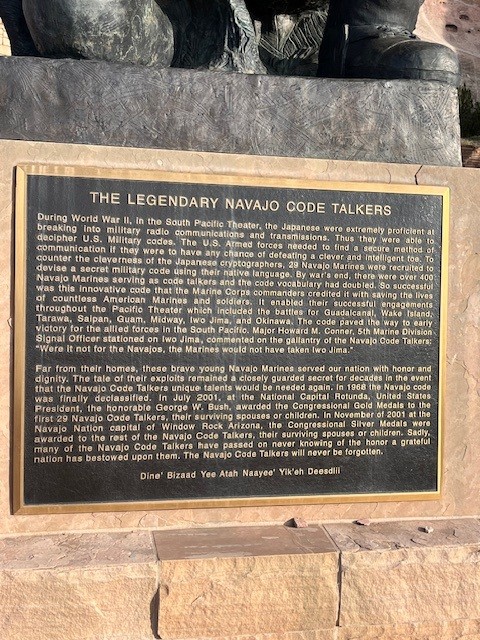 Thursday, September 18, 2025 – It was a bit chilly this morning so our circle time to start the day was held inside in the hotel conference room that honors the Navajo Code Talkers.