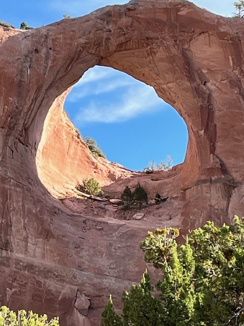 We drove to Window Rock, which is across the state line in Arizona. This is the capital and administrative center of the Navajo Nation. We viewed the sacred rock formation which is ceremonially called Earth’s Center as we walked through the veterans park at the base of Window Rock.