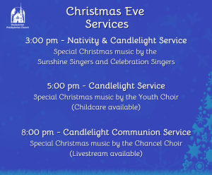 We hope you can join us for one of our three unique offerings as we worship together in the Sanctuary.