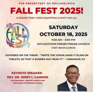 DPC is hosting Presbytery of Philadelphia’s Fall Fest 2025. On Saturday, October 18, representatives from churches in the Philadelphia Presbytery are invited from 9:30 am to 3 pm. As part of being a host, we will need volunteers at different times to welcome people, help give directions and help with lunch.